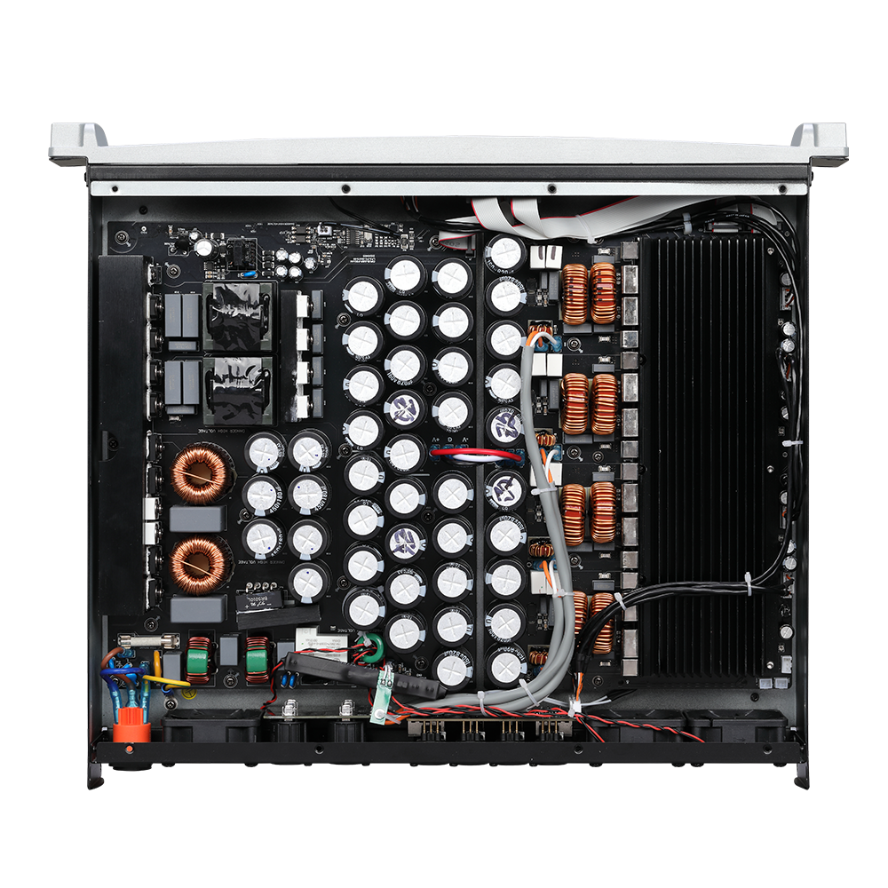 The PS41500 represents the pinnacle of the PS series, delivering 4x1500W at 8Ω (4x2250W at 4Ω) through 20 power transistor pairs per channel and 16 ultra-high-capacity capacitors. This 3U powerhouse is built for the most demanding professional audio applications.