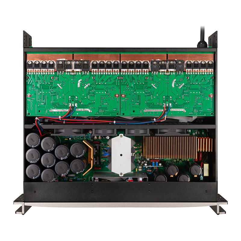 The PS41500 represents the pinnacle of the PS series, delivering 4x1500W at 8Ω (4x2250W at 4Ω) through 20 power transistor pairs per channel and 16 ultra-high-capacity capacitors. This 3U powerhouse is built for the most demanding professional audio applications.