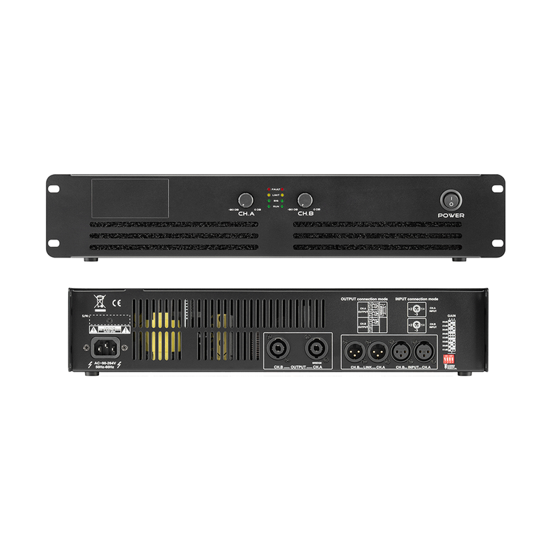 H6.0 2 channel class h power amplifier with stereo parallel, bridge three modes, multiple protection to ensure safety. Using high-precision SMD devices and toroidal transformers, the product has high reliability and strong anti-interference ability. Three-stage class H line design, small size, good heat dissipation. Suitable for meeting rooms, stadiums, etc.